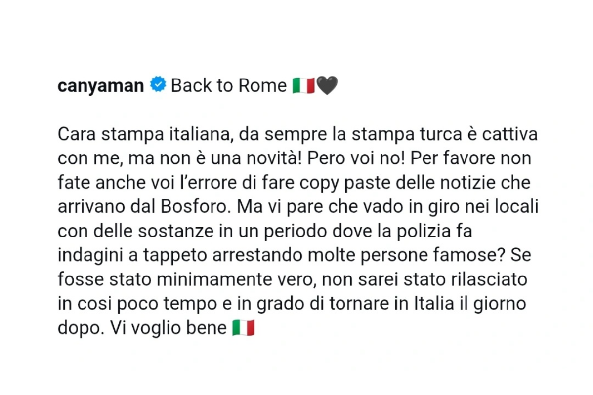 Can Yaman toplumsal medya hesabından yaptığı İtalyanca açıklamada şunları tabir etti: