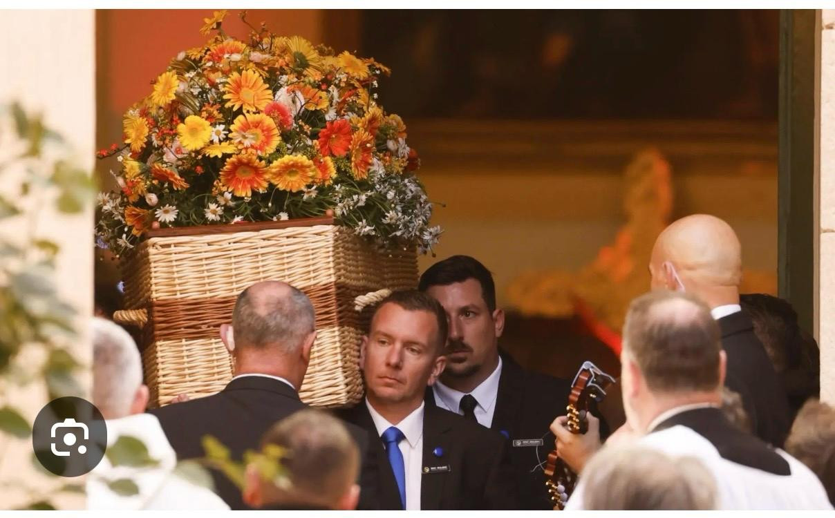 Cenazesi kiliseye çiçeklerin altında kaybolmuş beyaz bir tabutla getirildi.