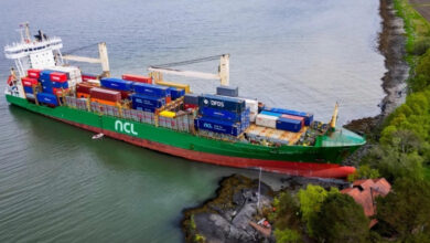 Norveç’te 135 metrelik yük gemisi bir evin bahçesinde karaya oturdu