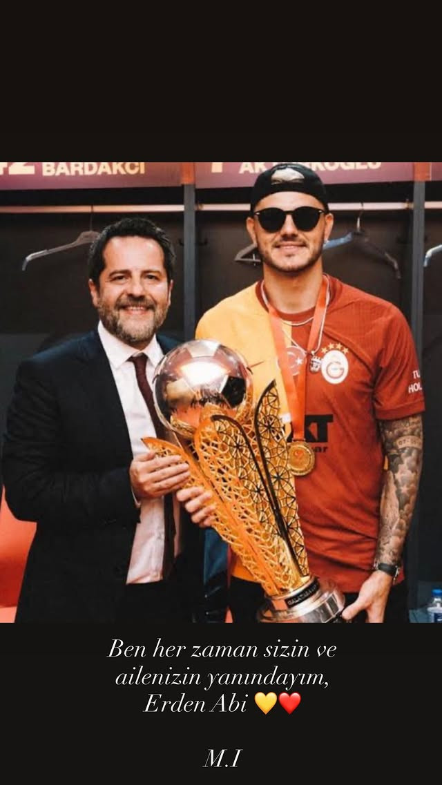 Erden Timur’un yöneticilik yıllarında kazanılan bir kupayla birlikte çekildikleri fotoğrafı Instagram öyküsünden paylaşan Icardi paylaşımına şu notu düştü: