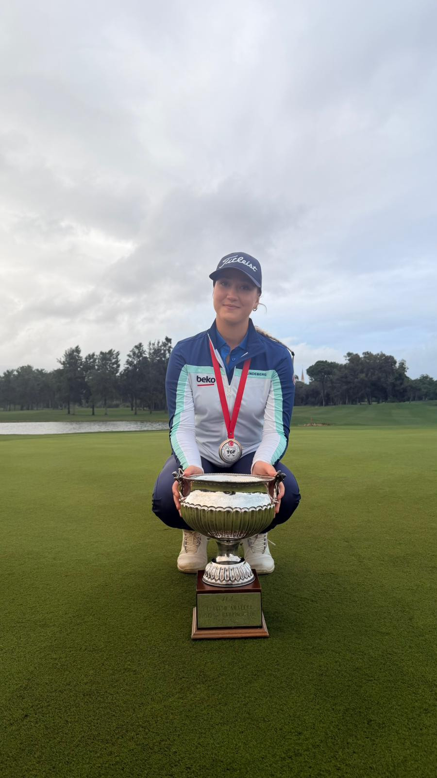 Koç Holding Onursal Başkanı Rahmi Koç’la her yılın ilk günü antrenman maçı yapan milli golfçü Deniz Sapmaz, dün şampiyonluğa ulaştı