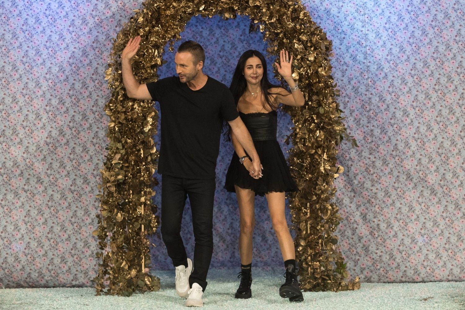 Tasarımcılar Hila (sağda) ve Kristian Aadnevik (solda), defilenin sonunda izleyicileri selamladı.