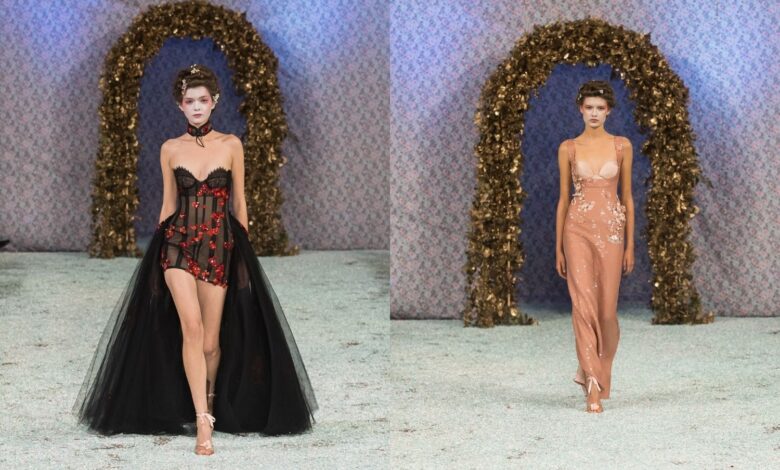Fransa’nın son kraliçesi olan “Marie Antoinette anısına” temasıyla tanıtılan moda gösterisinde, kıyafetler güçlü kumaşlar, ayrıntılı işlemeler ve güçlü, şık bölümler içeriyordu.