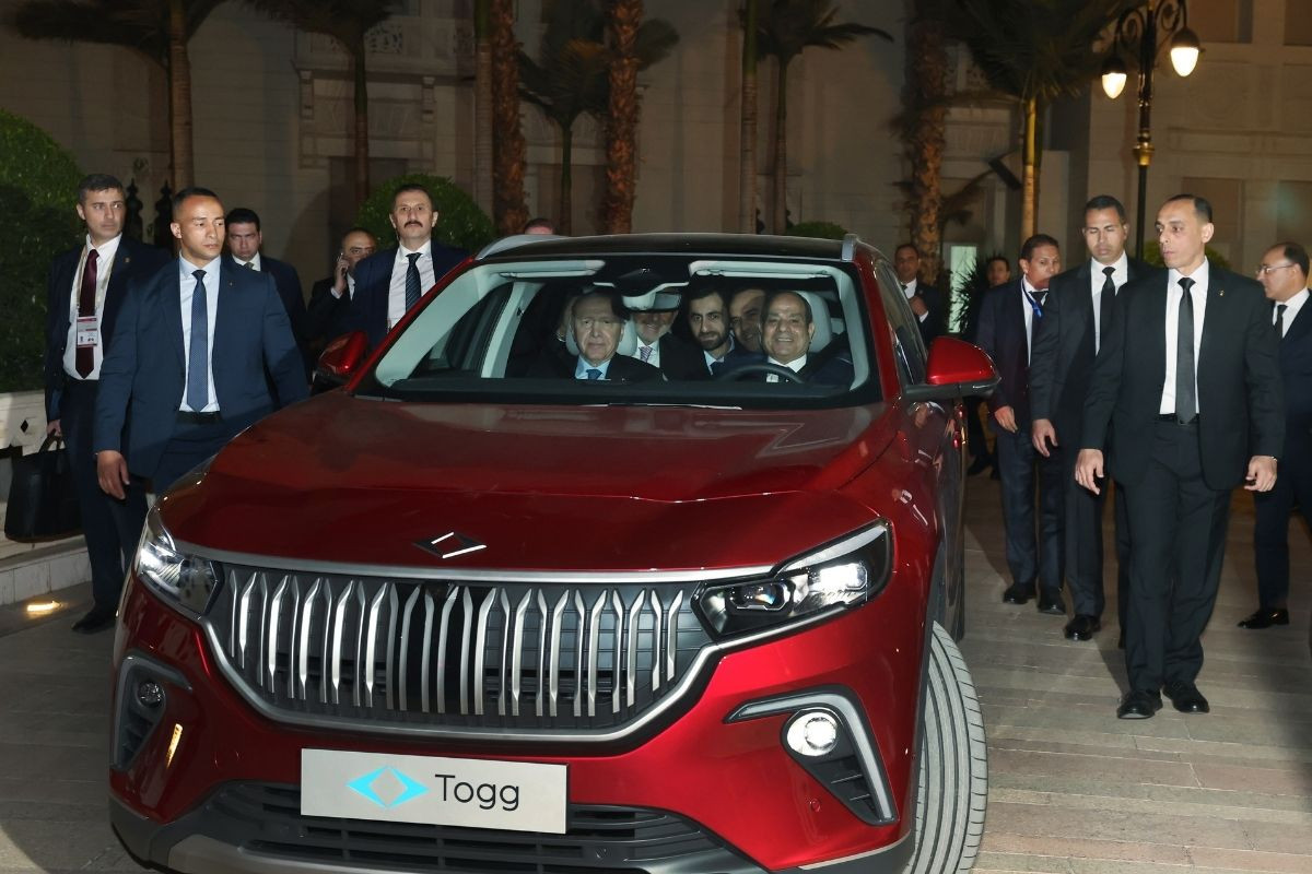 Erdoğan, forum öncesinde, Mısır Cumhurbaşkanı es-Sisi’ye Türkiye’nin yerli elektrikli arabası Togg’u ikram etti.