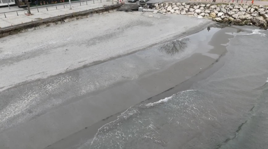 Avcılar, Ambarlı Mahallesi’nde de denizin yaklaşık 15 metre çekildiği görüldü. Yaz aylarında plaj olarak kullanılan alanda denizin geri çekilmesiyle kumsal alanın büyüdüğü görüldü.