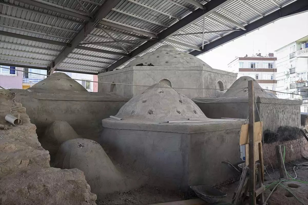Restorasyon kapsamında “Çifte hamam” olarak bilinen ve dönemindekilerin tersine bayanlar kısmının erkeklerinkinden büyük ve geniş olmasıyla dikkati çeken hamamda, beton eklentiler, muhdes sıvalar, camekanlar, mermerler ve taşıyıcı özelliğini yitiren moloz taş duvarlar yenileme çalışmaları kapsamında söküldü ve kubbelerde ayrıştırma yapıldı. Hamamdaki hafriyatlar sonucu ulaşılan, döşemenin altındaki sıcak havanın dolaştığı “cehennemlik” alanında, 850 ton balçık paklığı yapıldı. Hamamdaki çalışmalarda küçük bir sarnıç ile birtakım bölmelerde kalem işi süsmeler keşfedildi. Bu süslemeler de onarım sonucu ortaya çıkarıldı ve görünür kılındı.