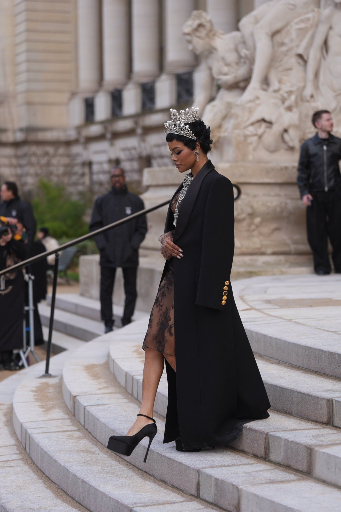 ABD’li müzikçi ve oyuncu Teyana Taylor (35), Paris Moda Haftası’nda Fransız moda meskeni Schiaparelli’nin evvelki gün gerçekleşen İlkbahar/Yaz 2026 defilesine, ekim ayında Louvre Müzesi’nde gerçekleşen soygundan ‘ilham’ alan mücevherlerle katıldı.