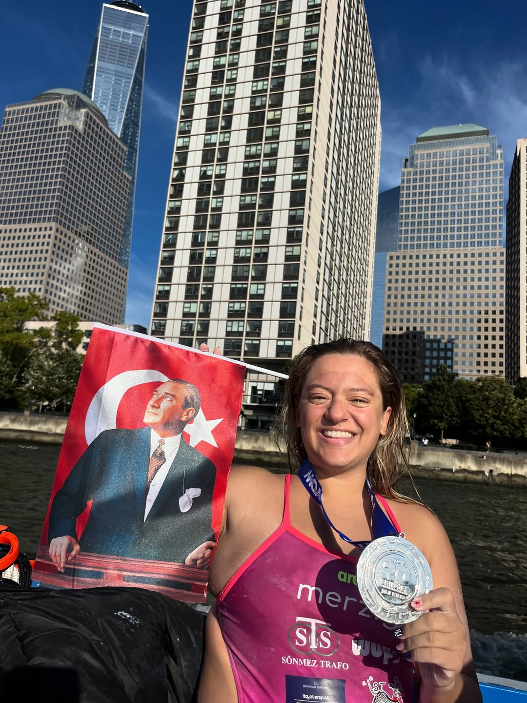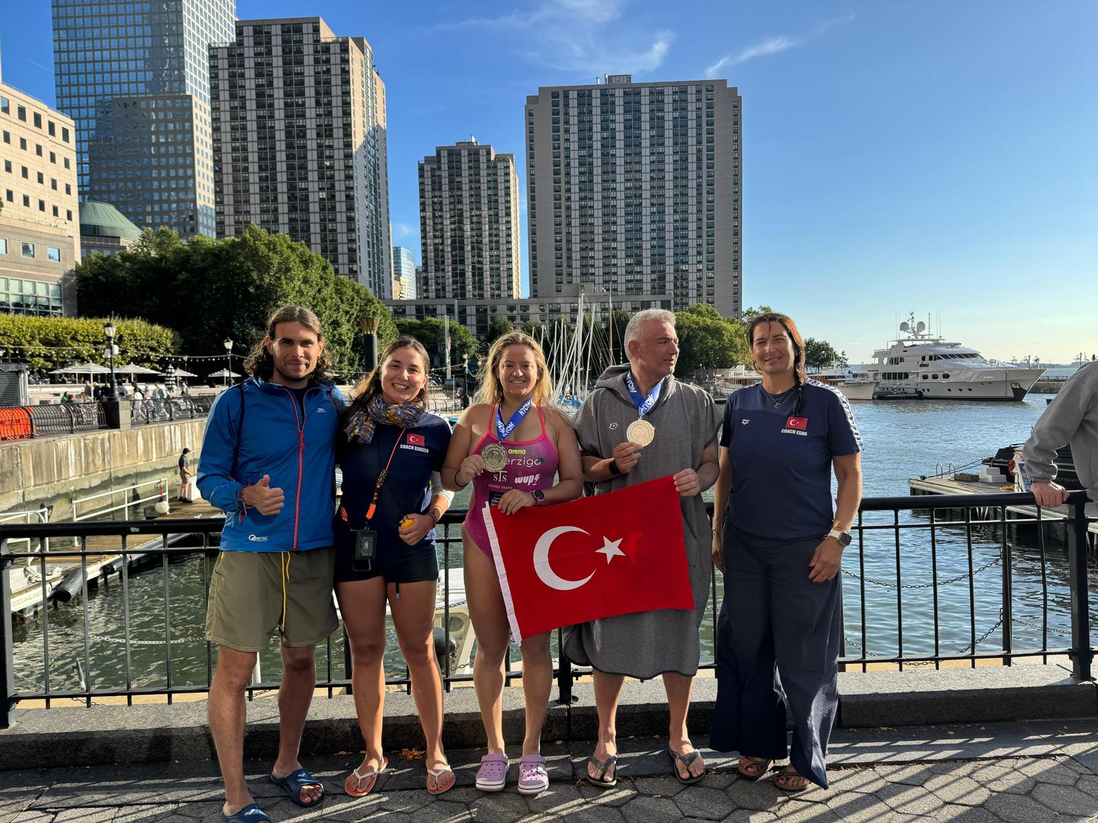 Türk yüzücüler Ece Demir ve Çağatay Kalkancı, 48 kilometrelik ‘Manhattan 20 Bridges’ parkurunu tamamlayarak bir ilke imza attı